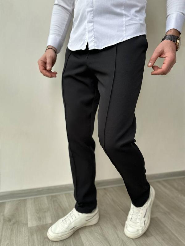 👍👍👍👍👍👍👍👍👍 🆕 Мужские брюки 🆕 ➡️Мод. 722 ➖➖➖➖➖ ▫️Тканина: креп-костюмка ▫️Размеры: 46-48, 50-52, 54-56 ▫️Цвета: черный, 👉 Цепочка в комплект не входит. ➡️Замеры ▪️46-48 ОС 108 Длина 103 Крокова 75 ▪️50-52 ОС 113 Длина 103 Крокова 75 ▪️54-56 ОС 118 Длина 105 Крокова 75 ➖➖➖➖➖➖➖ Брюки классического кроя будут выигрышно смотреться как под туфли, так и под кеды. Стрелки по переду добавляют изюминку, а приятная ткань придает легкость. Классика - всегда верный выбор! Саффи