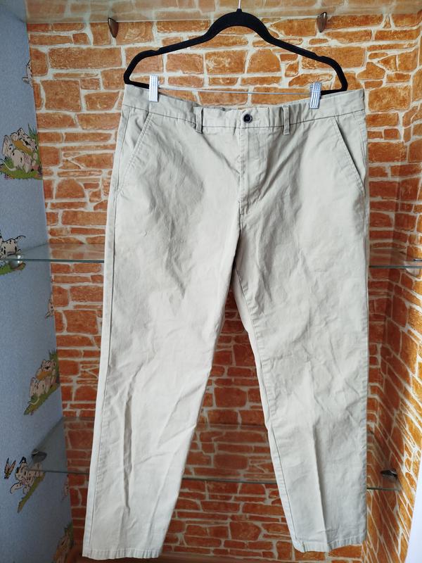 Мужские брюки M&S из плотного картона Regular Fit В поясе полуобхват 51,5 см Длина от пояса 105 см Шаговый 77 см Посадка 30,5 см ПОБ 60 см Состав ткани 98% cotton 2% elastane.