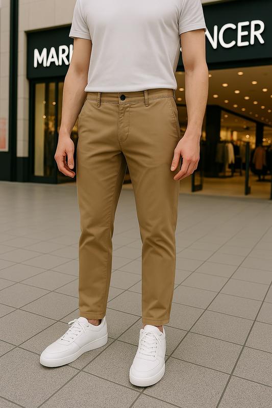 Пропоную чиноси від відомого британського бренду Marks & Spencer, який славиться своєю якістю, комфортом та елегантним стилем. Одяг цієї марки ідеально підходить для тих, хто цінує практичність та вишуканість у повсякденному житті. Матеріал: 98% бавовна, 2% еластан — тканина приємна на дотик, з легкою еластичністю для максимального комфорту у русі. Фактичні виміри: Об'єм талії: 80 см Об'єм стегон: 104 см Довжина по зовнішньому шву: 104 см Довжина по внутрішньому шву: 76 см Ширина штанини внизу: 29 см Ширина коліна: 19,5 см Висота посадки попереду (до шва між ніг): 26 см Висота посадки позаду: 38 см Посадка — середня, що забезпечує зручність та гарне прилягання. Стан ідеальний — без дефектів, виглядають як нові! Дивіться також інші речі у моїх оголошеннях! Підписуйтеся, щоб не пропустити новинки! Питайте — із задоволенням відповім на ваші запитання!