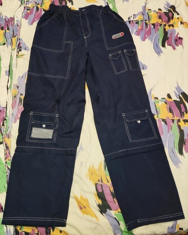 Штани Identic, розмір — M, довжина — 107 см, по внутрішньому шву — 77 см, пояс — 40-45 см, штанина низ — 23 см, плащівка, підкладка — сітка, безліч кишень, колір темно-синій, у чудовому стані