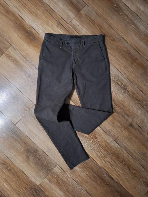 Італійський бренд модного чоловічого одягу Antony Morato Заснували троє братів Кальдареллі родом із Італії Колір - хакі + сірий Талія - 42см Стегна - 52см Посадка перед - 24см Посадка зад - 36см Довжина – 103см Низ - 15см Тканина щільна , м'яка , тягнеться Дуже хороші штани
