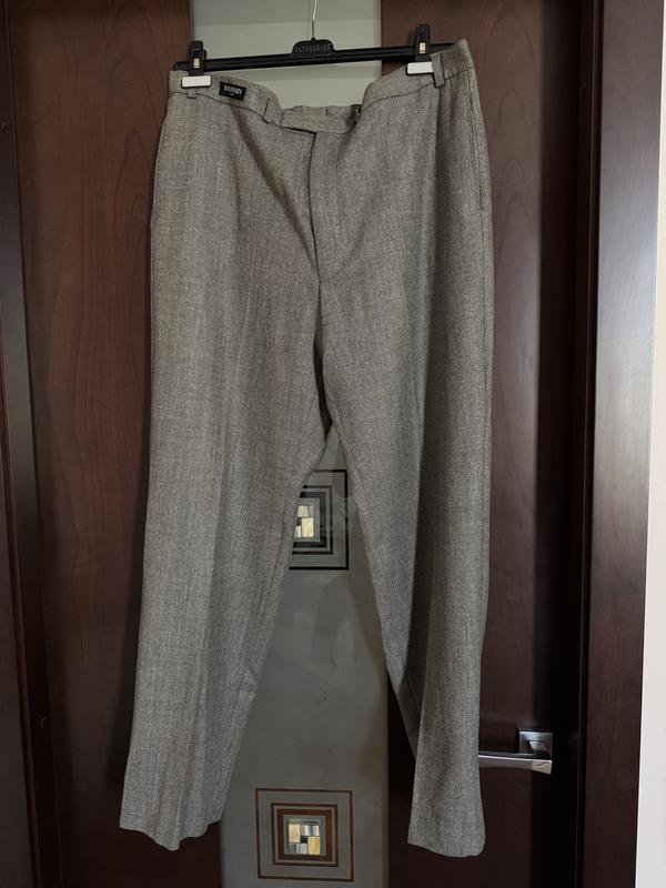 Чоловічі штани великого розміру від преміального бренду Balmain , виконані на вищому рівні. Гарний сірий меланж колір. 60% шерсть. Розмір XXL. Стан нової речі, навіть пластмасова «штучка» ( на якій паперова бірка) не видалена. Ззаду мають дві кишені . Довжина- 110 см. Пот- 50 см. Поб- 61 см. Ширина внизу штанини- 22,5 см. Трохи можуть тягнутися, так як в складі є 4 % лайкри. В Україні нові коштують від 25 000 до 40 000.