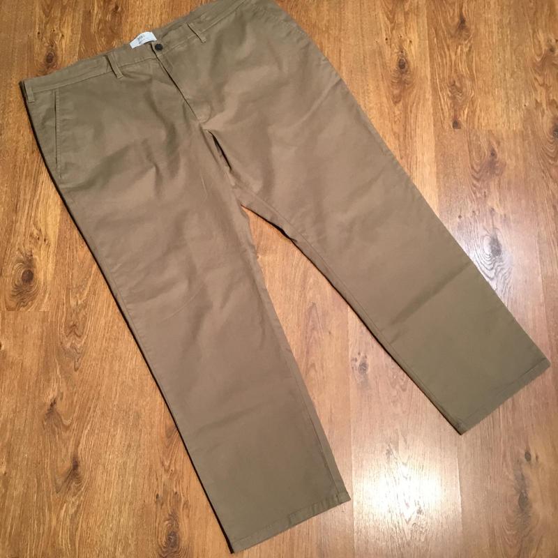состояние идеальное известного бренда 98% катон 2% эластан ткань средней плотности тянется застегивается на молнию и пуговицу два боковых кармана, сзади два кармана на пуговицах есть шлевки для ремня прямого кроя замеры пот 58/61 поб 66/ 73 длина 103 шаговый 75 низ 22