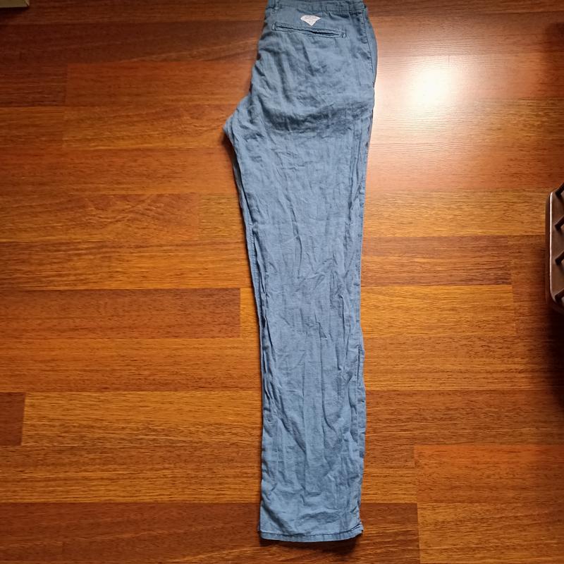 состояние идеальное цвет голубой пот.42 длина по внешнему шву 105 внутреннему 81 штанина снизу 17 по бедру 32 посадка спереди 24 сзади 33 отправляю новой почтой.