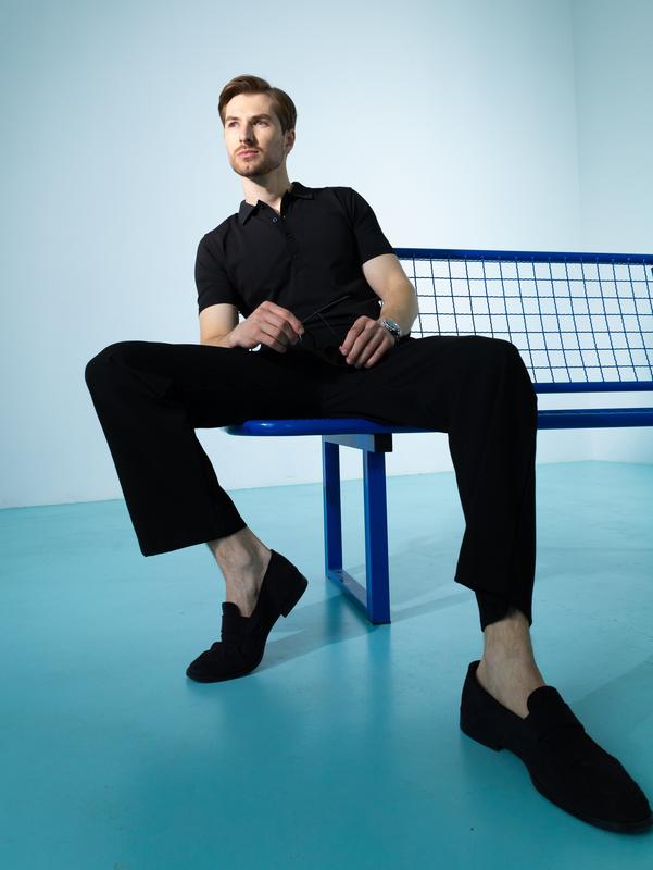 ◾️Склад: 65% бавовна, 35% поліестер, 10% лікра ◾️Розміри: s m l xl xxl Штани зверху завʼязуються регулювальним шнурком, мають прямий крій. Тканина штанів щільна. Чоловіче чорне поло на ґудзиках 1460 грн (-10% знижка на другу річ із каталогу)