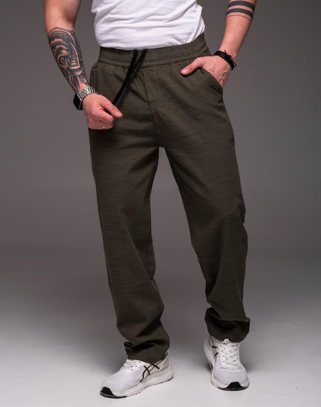 🔶 Артикул: 2376 хак 👖 Мужские брюки из льна хаки на резинке 📐 Размеры: M,L,XL,2XL,3XL 👍 Тканина: льон 100%. 3 кармана задняя на липучке. Пояс - резинка + шнурок, пряма штанина. 🧷 Виробник: Китай 🇨🇳 ✔️ Перед заказом уточняйте наличие размера