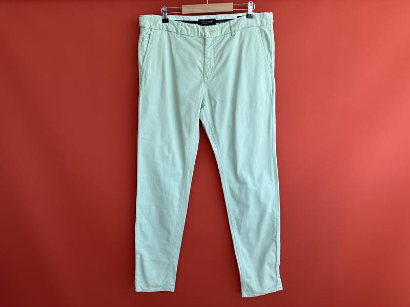 Scotch & Soda Mott Оригинальные мужские брюки брюки чинос джинсы размер 34 Состояние новой вещи Минимально тянутся Цвет - бирюзовый ◾️Пояс 47 ◾️Бедра 53 ◾️Бедра под швом между ногами 32 ◾️Длина 108 ◾️Ширина на выходе 17.5 ◾️Посадка спереди 27 ◾️Посадка позаду 40