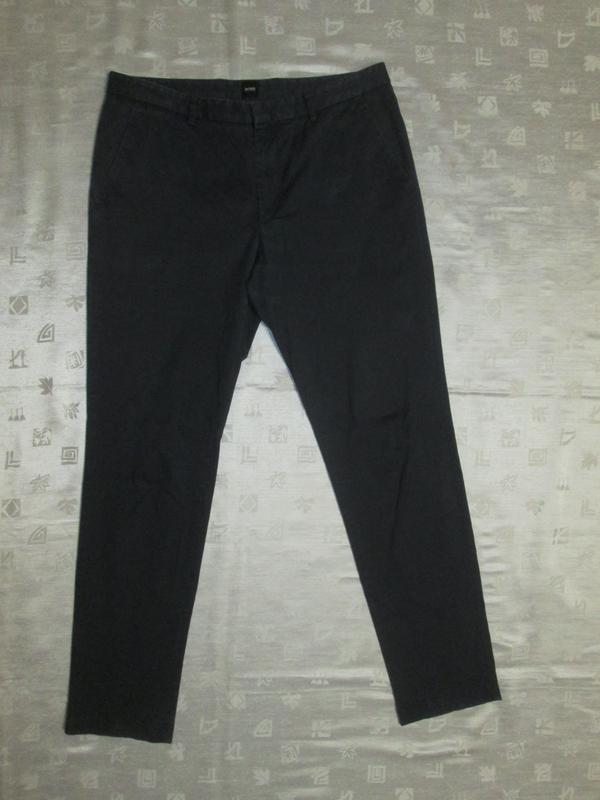 Оригинальные брюки Hugo Boss в отличном состоянии. 97% хлопок 3% эластан, ткань достаточно тонкая. Размер указан 32. Замеры: Пояс-43, бедра-53, посадка-25, длина-102, шаговый-79, штанина сверху-32, снизу-17 см. Цвет серый