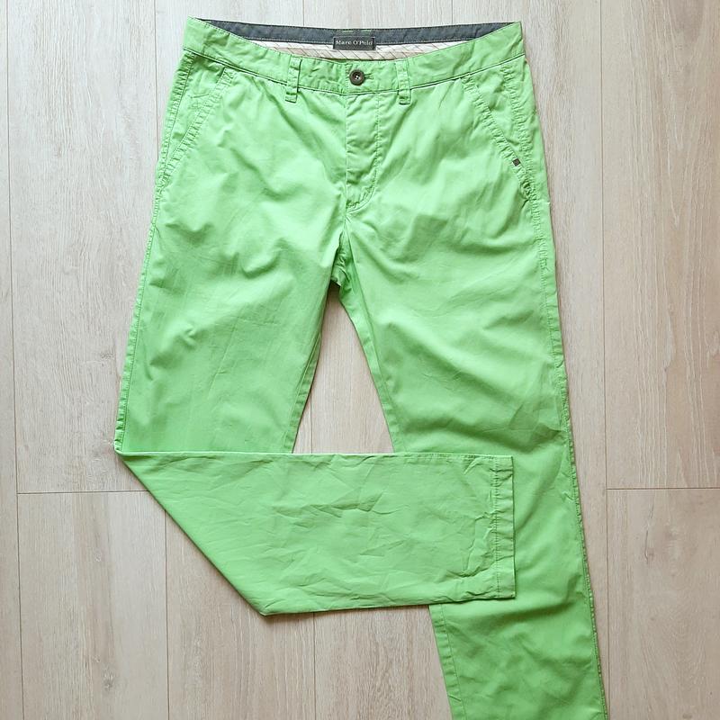Легкие брюки чинос, фирмы Marc O’Polo. Стан идеален, без дефектов и нюансов. Пуговицы брендированные. 5 кишень. Из новых коллекций. Материал тонкий. Размер: 48 ПОТ: 44см ПОБ: 56см Длина: 110см Ширина в колене: 23см Ширина внизу: 18,5см. ♻️ Состав: 100% хлопок 👔👖👕🧢👟🩴 Больше одежды в ТГ: ecofinds ✅ Подписывайтесь на мою стороночку - часто обновляю ассортимент. ❗ Важно! Обязательно, перед покупкой - прочитайте раздел "Про меня".