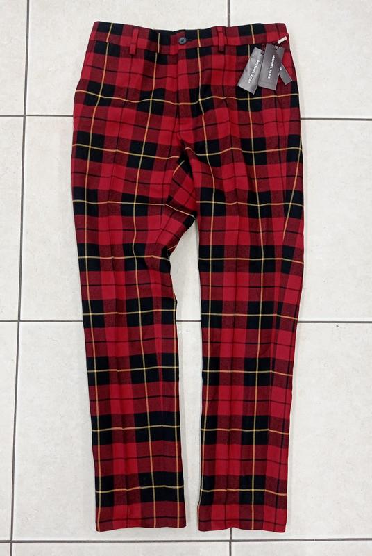 Брюки мужские MICHAEL KORS р. 32/32. Италия. Материал натуральная шерсть. Цвет: красный в клетку. Состояние: новые. Slim fit. Замеры: Обхват талии 90 см. Длина 105 см. Брюки мужские красные в клетку, размер М.