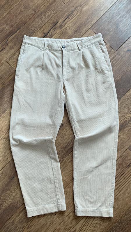 Вельветові чоловічі брюки бежевого кольору прямого крою regular fit