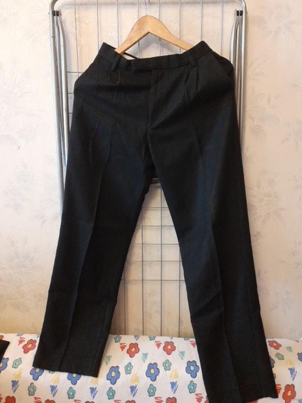 Классические мужские брюки от Glengarnock. Состав полиестер и вискоза. Отлично стираются и мало мнутся. Застежка на молнию и два крючка. Длина по боковому шву 94 см, полуобхват талии 35 см. Боковые карманы и один сзади. На одной брючине по низу осталась заводская подшивка, на второй брючине отпороли, думали удлинять. Оверлок брючин по низу заводской.