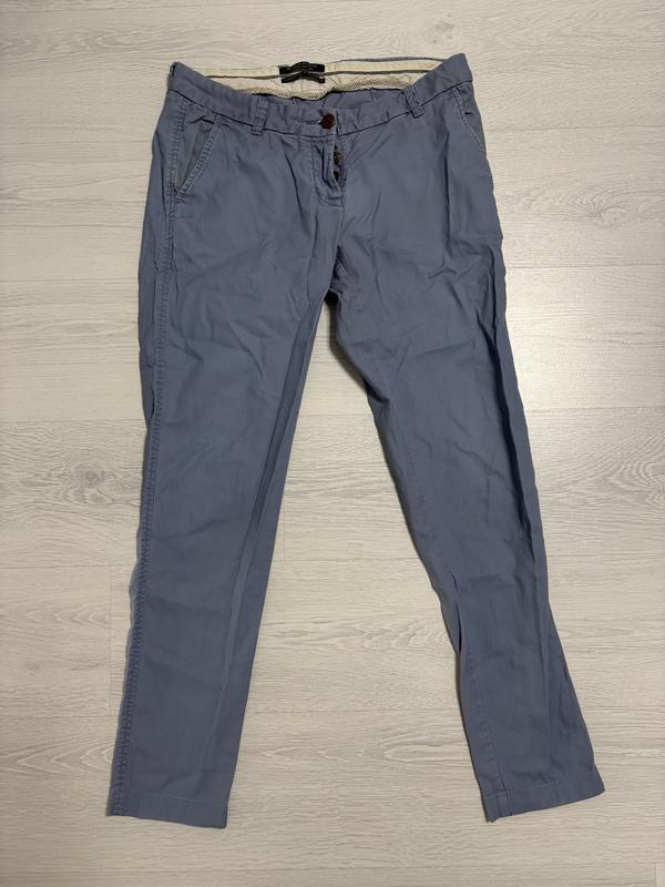 Легенькі бавовняні брюки Стан вживаний, але добрий, трохи затерта тканина біля карманів Розмір 28/32 Довжина 98 Довжина по внутрішньому шву 76 Ширина штанини знизу 15 Ширина у поясі 43 Ширина у стегнах 54