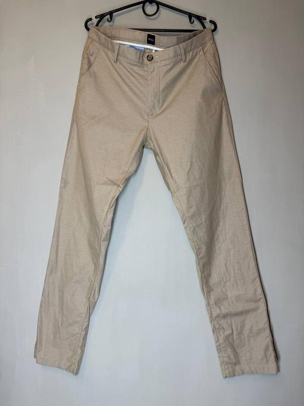 Брюки BOSS — элегантность в каждом движении ▪️ Бренд: BOSS HUGO BOSS ▪️ Размер: 50 ▪️ Модель: Stretch — комфортная посадка с легким эластичным эффектом ▪️ Материал: вероятно хлопок с эластаном (точный состав не указан) ▪️ Цвет: бежевый / светлый хаки ▪️ Дизайн: классический крой, застежка на пуговицу и молнию, шлевки для ремня, внутренняя подкладка в полоску ▪️ Состояние: идеальное- без пятен и дефектов ▪️ Производство: Турция Также обратите внимание на мое другое объявления))