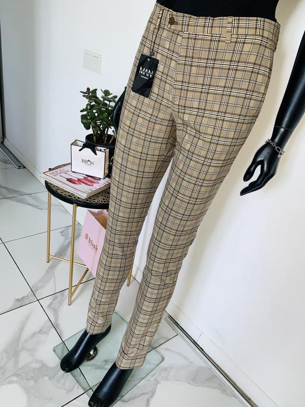 Super skinny костюмные брюки в клетку tan от boohooman – размер 30l