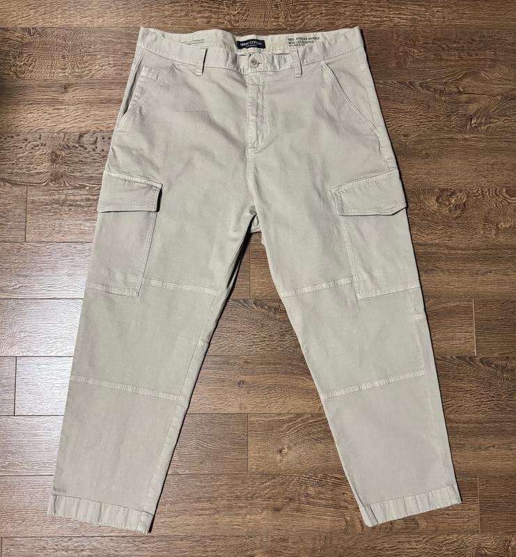 Брюки карго немецкого премиум бренда Marc O Polo ,цвет светло-серый,состав:98% коттон,2% эластан,размер 36/32 ,производство Индия,замеры (п/обьём пояс 49,в бёдрах 60,длина по внешнему шву 100,по внутреннему 68,ширина внизу 19.5).Состояние новой вещи.