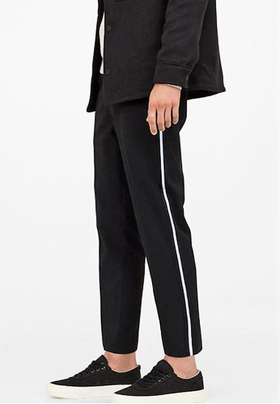 65% полиэстер, 31% вискоза, 4% эластан Костюмные брюки из эластичной хлопковой ткани с потайной застежкой на крючок и молнию. Боковые карманы, прорезные карманы сзади и контрастные полосы по бокам брючин. Slim Fit - свободный крой в области бедер и сужается к низу от колена, что создает непринужденный, но приталенный образ. Полуобхват пояса 39см, полуобхват бедер 52см, длина изделия 95см.Без бумажной бирки.
