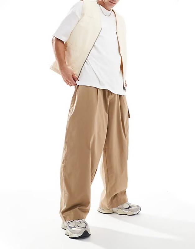 Чудові стильні карго від asos. Мають широкі штанини, накладні кишені, складки біля пояса. Тканина і сам пояс не тягнуться. Стан ідеальний. ПОТ 44.5 см ПОС 64 см мають сидіти вільно Посадка 49/50 см Ширина штанини зверху/знизу 45/38.5 см Довжина 113 см Розмір W34, 86 см L 32 R 81 см Перші три фото - для прикладу посадки і крою.