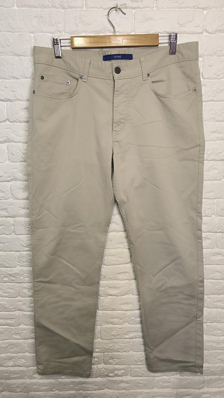 Состояние идеальное 97% хлопок 3% эластан Ширина по линии пояса 44 см Ширина бедер 54 см Длинна по боковому шву 103 см Штанина на выходе 19 см