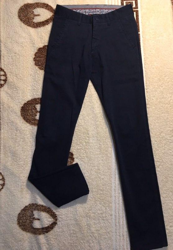 Классические стильные слегка зауженные синие брюки на парня {рост 170-175} Состояние идеальное {были использованы 1 раз} Ткань не плотная {в жаркую погоду будет нормально}, смотрятся супер! Замеры: Пояс 37 см Высота пояса 25 см ПОБ 43 см Длинна 108 см По дополнительным вопросам/фото пишите в любое время}