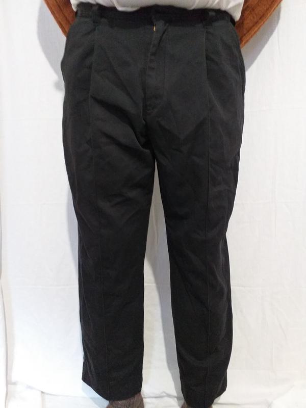 ПОТ-47, ПОБ-57, посадка-33/44, шаговый шов-77, длина-107, ширина низа брючины-23. Дефектов нет. Состав предположительно- хлопок + полиэстер.