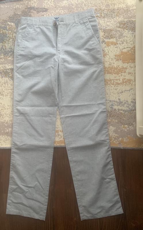 Продам літні брюки Армані. Оригінал. Одягнені 1 раз на захід. Стан ідеальний. ПІТ 40см, довжина 108см від пояса по зовнішньому шву , по внутрішньому шву 82см. 100% бавовна