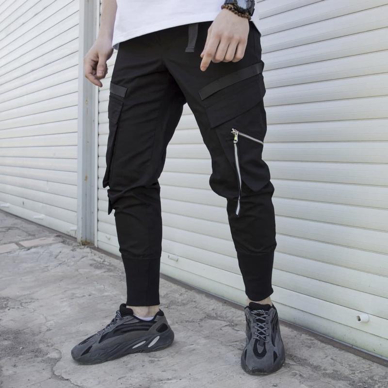 - Размеры: S, M, L, XL, XXL. - Ткань: хлопок 100%. - Крой зауженный, внизу высокий манжет. - В поясе резинка+ внутри вшит ремень с фиксатором. - Рефлективная лента на кармане. Карманы: - основные косые спереди - накладные объемные карманы на бедре -задние внутренние TR14