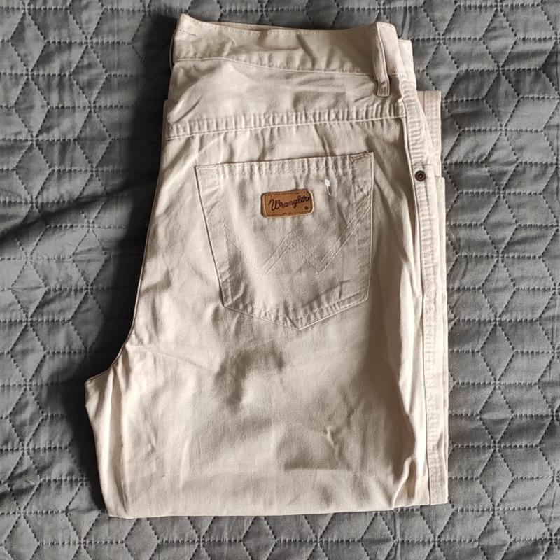 w30l34 🔥 колір : бежевий бренд: Wrangler denim дуже якісний матеріал : 100%бавовна ЗРОБЛЕНО В США 30 НОТ 37-38 НОБ 53-55 Посадка 29/39 Довжина 114/88 НО калоші низ 20 🚚відправляю НП, Укрпоштою, Justin можна оплачувати на картку і безпечної оплатою 👖в моїй Шафе ще багато пропозицій джинсів, нижньої білизни, взуття та верхнього одягу для жінок, чоловіків і дітей