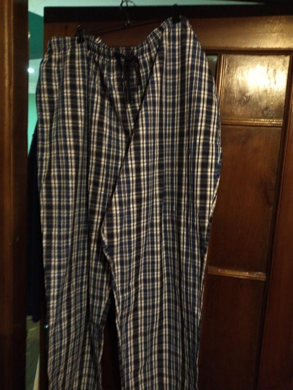 комфортные брюки в клетку из стопроцентного хлопка. брюки на резинке есть лента для затягивания брюк, имеется два кармана впереди. полуобхват талии 65 см, полуобхват бёдер 80 см, длина 111 см от резинки