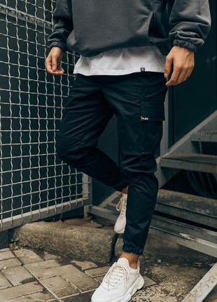 Штаны Кларк, черные 👽 - Размеры: S, M, L, XL - Материал: коттон (хлопок 90% спандекс 10%) - Резинка и шнурок в поясе - Два накладных карго кармана - Утяжки для регулировки ширины внизу штанины - Декоративные швы в оплати колена