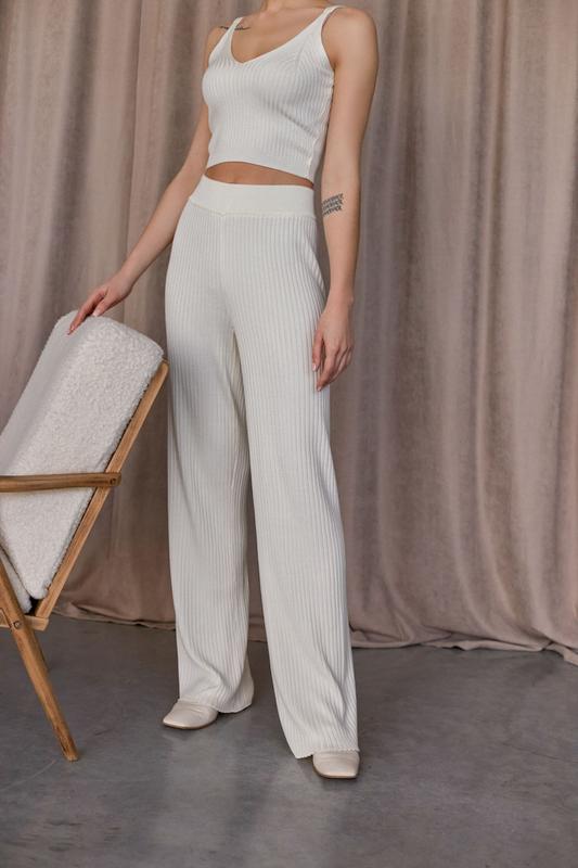 Трикотажные брюки в рубчик белого цвета. модель 2306 trikobakh