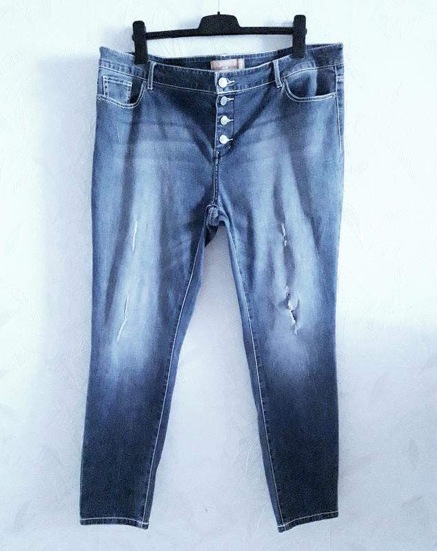 Хочу предложить Вам приобрести модные стрейчевые джинсы, зауженные к низу от Janina. Материал необычайно приятный к телу: тонкий стрейчевый котон из 74% хлопка, 22% гипоаллергенный полиэстера и 4% эластана. Очень хорошо тянется. Указываю несколько размеров поскольку размерные сетки разных брендов отличаются и материал тянется. Размер: 48 (евро),наш: 56?-58-60?, но для уточнения смотрите замеры: длина по наружному шву 101cм; по внутреннему шву 72см; полуобхват по талии 55-62см; полуобхват по бёдрам 57-68см; ширина штанин: верх 31-36см; средина 21-26см; низ 15-18см; пояс 4см; глубина посадки: спереди 31см; сзади 38см. Два больших кармана и один маленький, спереди. Сзади два кармана. Застежки: 4 пуговицы-заклёпки.