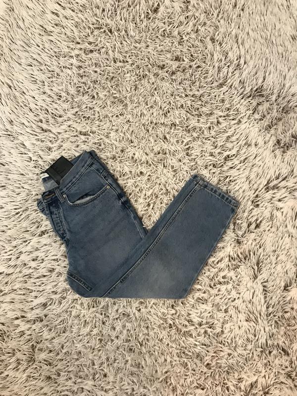 Джинсы зауженные, укороченные. Цвет синий джинс. Материал плотный. Надевал несколько раз, состояние идеальное, без нюансов. Замеры: Длина - 90 см Пояс - 39 см Низ - 15 см Бедро - 28 см