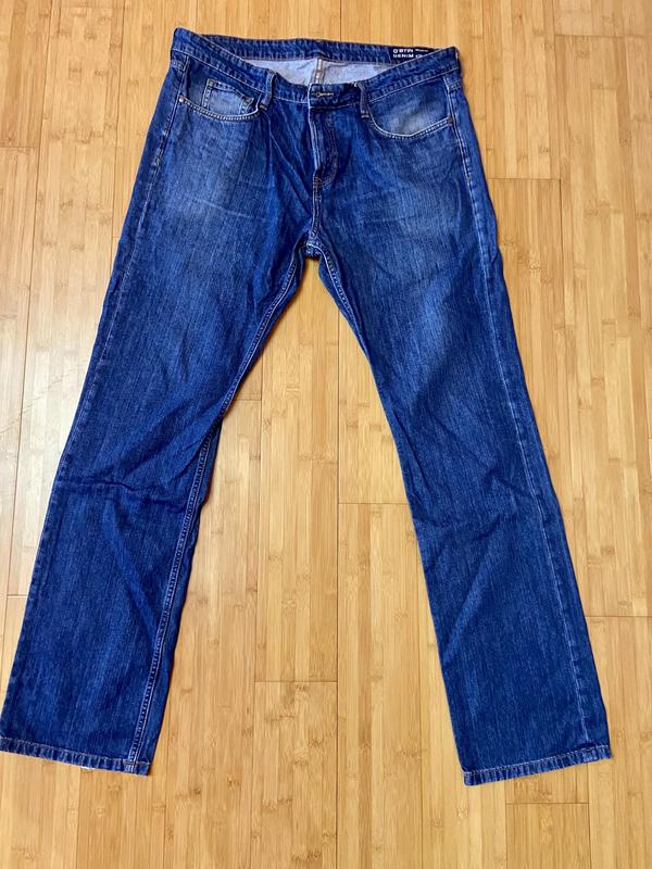 Мужские джинсы, на рост 38/34 на фото есть все замеры и на последнем видно, какой есть дефект снизу на штанине
