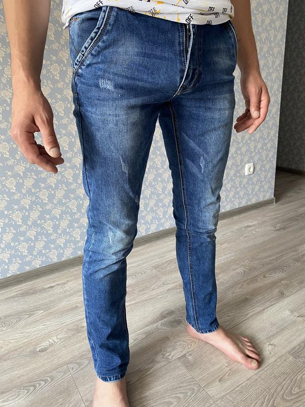 Новые джинсы, ни разу не были одеты, 98% хлопок, 2% эластан, Турция Размер 31: ширина по линии бедер (B) 52 см, ширина по поясу по прямой линии (A) 43 см, длина брюк по боковому шву с поясом (C) 106 см, ширина штанины сверху (D) 29 см, ширина штанины по низу (Е) 15,5 см