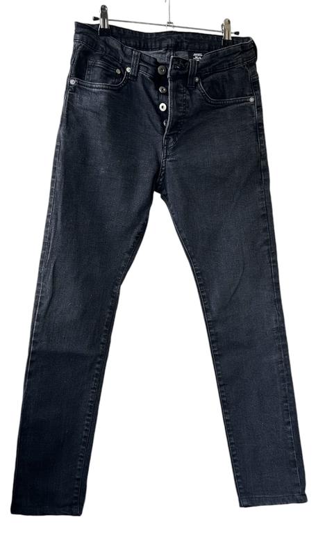 Джинси чоловічі «H&M» skinny, напівобхват талії 38 см, довжина по зовнішньому шву 93,5 см, довжина по внутрішньому шву 68 см, стегна напівобхват 44,5 см, ширина штанини зверху 25 см, ширина штанини знизу 14 см розмір: 30 / 32, CN 175/76A