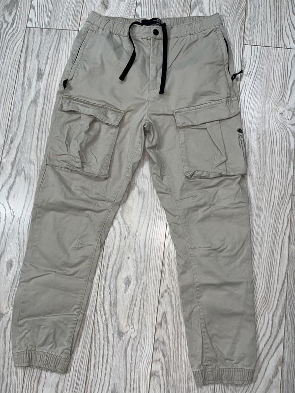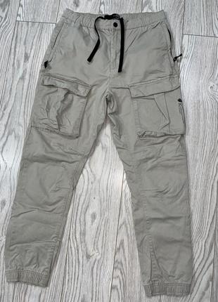 мужские джоггеры размер s, талия 38см тянется до 42, длина 98см, цвет бежевый, 98%котон 2% эластан, по деталям воспользуйтесь,