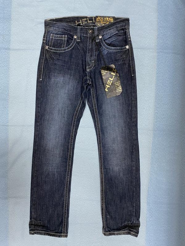 Джинсы мужские американского бренда Helix, мод. Slim со средней посадкой, выполненные в сине-сером цвете, производство Пакистана! Материал ( плотный, не стрейчевый) : 100% хлопок! Фурнитура с логотипом бренда, низкая посадка задних карманов! Размер: (на средний рост) W29 L30 : ширина ( в талии ) - 40 см, ширина ( в бедрах ) - 48 см, заг. длина - 103 см, длина шаговая - 78 см, посадка ( с переда ) - 23 см, ширина ( низ ) - 19 см.