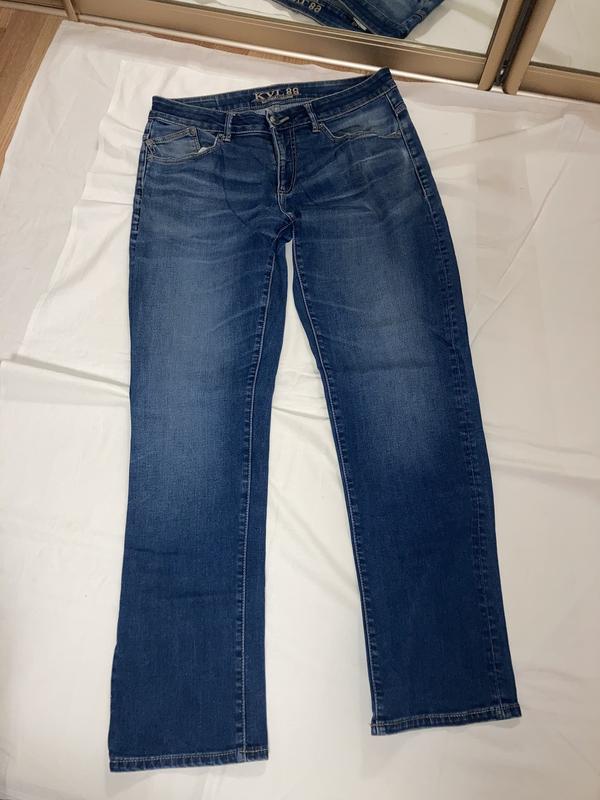 Джинси KVL розмір 33( 48-50). Написала б, що стан ідеальний, але порвані кармани( носили там телефони). Все інше без зауважень. Джинс якісний і тягнеться. Заміри: довжина 106 см, в поясі 43 см, посадка спереді 25 см, крок 80 см, ширина штанини 20 см. Класичні рівні джинси.