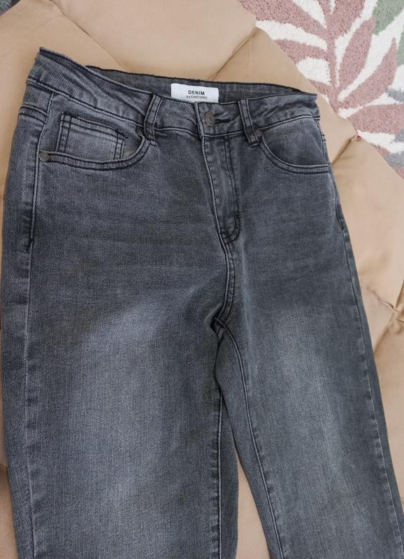 джинсы мужские серого цвета. штанина удлиненная, высокая посадка. джинс плотный