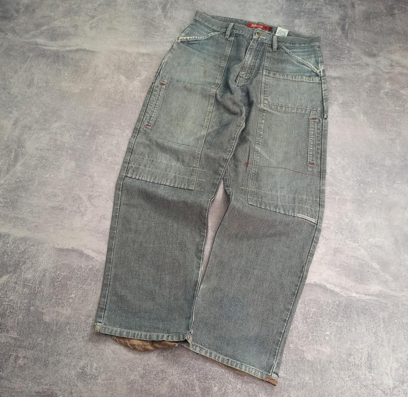 Оригінальні вінтажні джинси Mecca USA у стилі Y2K baggy. Вони мають культовий широкий крій skate/rap/oversized, що ідеально пасує як чоловікам, так і жінкам (unisex). Виконані з щільного, важкого деніму 100% cotton, що забезпечує довговічність та комфорт. Особливості: ✔ Широкий крій (baggy/carpenter/sk8) ✔ Глибокі накладні кишені ✔ Оригінальні нашивки та декоративні елементи ✔ Зі слідами часу – автентичний вінтажний вигляд 📏 Замiри: ▪ Полупояс – 44 см ▪ Довжина – 107 см ▪ Вихід – 24 см ▪ Обхват ляжки – 36 см 🔹 Ідеальний варіант для фанатів Y2K, streetwear, skate, rap, oversized стилю. 🔹 Виглядають круто з кросівками, худі, оверсайз футболками. 🔹 Рідкісний вінтаж! 💰 Беріть, поки є в наявності!