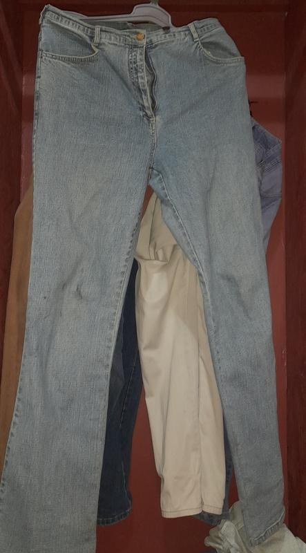 Продаю джинсы, размер по замерам: пояс – 41 см, длина по внутреннему шву – 82 см, по внешнему – 113 см. Идеальный вариант для дома или дачи, поскольку есть пятна. Ткань эластичная, крой удобный. Цена символична!