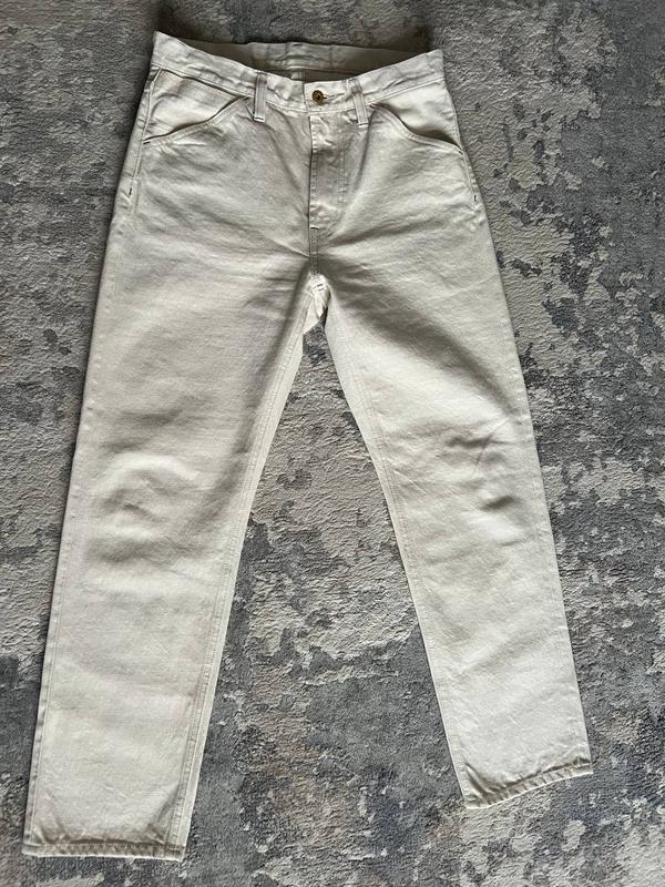 Джинсы staight fit светлого цвета. Замеры: - ПОТ - 41,5 см; - ПОБ - 55 см; - Ширина в бедре - 33 см; - Ширина на выходе – 20,5 см; - Посадка - 30 см; - Длина по внутреннему шву (Inseam) - 74 см; - Общая длина - 105,5 см. На последнем фото можно увидеть, как эта же модель смотрится на человеке. Материал: деним (100% хлопок), очень плотный, но одновременно очень комфортно в теплую погоду. Цвет: кремовый / off-white (фактичо, цвет неокрашенного денима. Стан: идеальный, фактически новый, никаких прядей, дефектов или следов от ношения или стирки. Большим преимуществом именно этой модели среди многих других джинсов является высокая посадка и они очень комфортны в бедрах. Они отлично подойдут на любую фигуру, в том числе и для тех, кто не пропускает день ног в зале). Что касается дополнительных фото, замеров, вопросов - пива обращаться ко мне в личные.