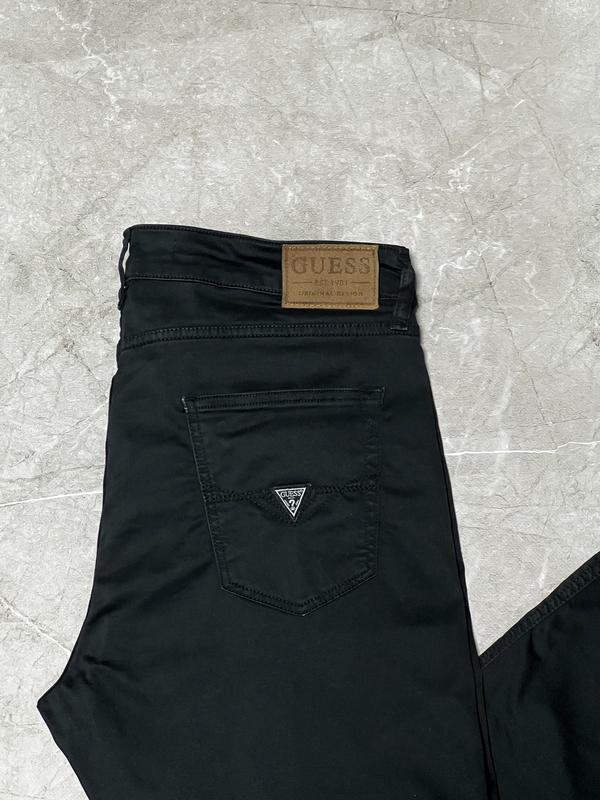 Продам джинси з нових колекцій GUESS (Оригінал), в насиченому чорному кольорі. В стані нової речі, розмір W34 (Довжина по зовнішньому шву 107см, ширина на виході внизу 17см, пояс 45см).