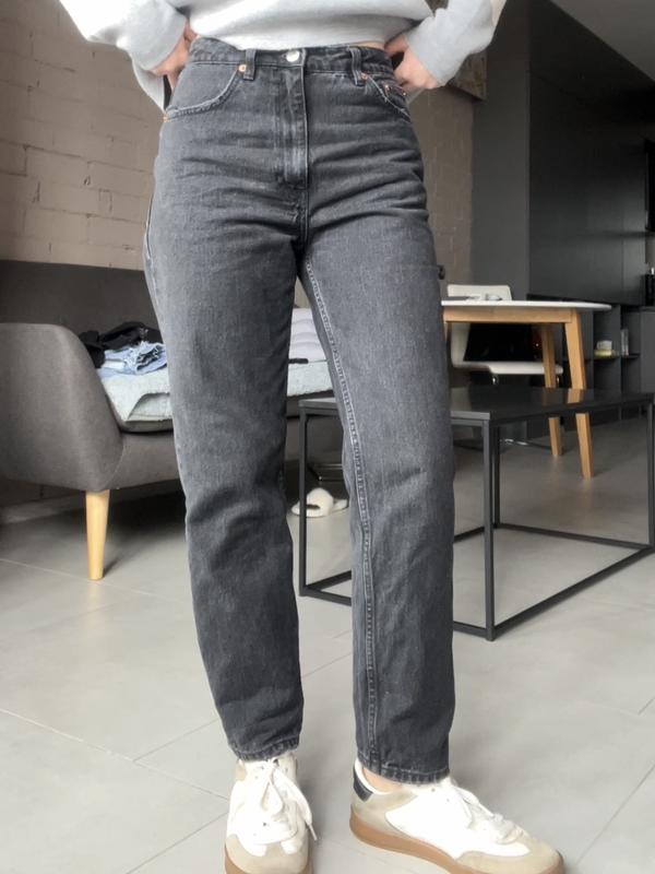Чорні джинси Мом від Манго. З ефектом випраного джинсу. Стан більш ніде ідеальний, майже не носились. Одягнуто на зріст 158 см, параметри 86-63-93 см