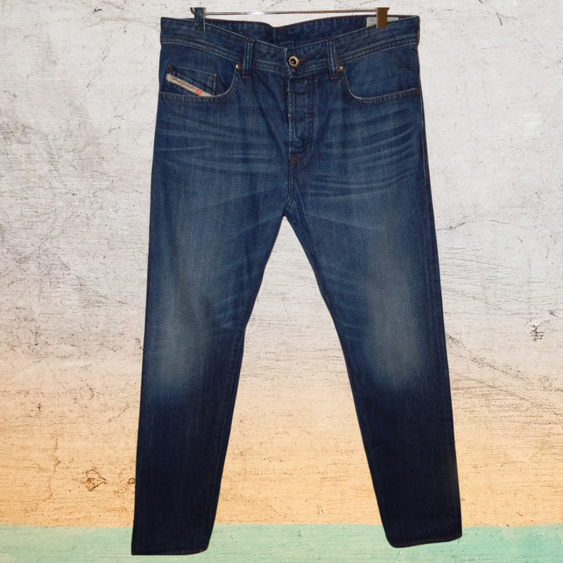 Джинсы DIESEL Buster 0838B Regular Slim Tapered. Size W33 L30 Модель: DIESEL Buster 0838B Стиль: Regular Slim Tapered 100% cotton Выцветшие участки денима. Стандартная талия, зауженные брючины. Потертости на бедрах и ягодицах. Size W33 L30 на 48-50 (не плотный) Замеры: пояс ПОТ 45 см, посадка 28 см, длина 103/78 см, ширина в бедре (пах) 29 см, колено 21 см, выход 18 см Made in Morocco