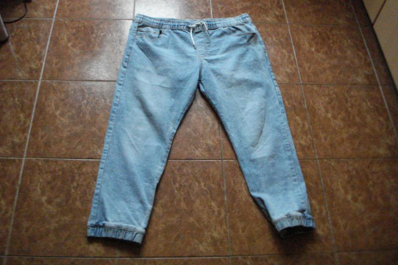Оригінальні FSBN, пошиті зі щільного деніму блакитного кольору (70% бавовна, 28% поліестер, 2% еластайн) у дуже гарному стані. Крій класичний: висока посадка, п'ять кишень. Обсяг талії 102 см (гумка тягнеться на 112 см), висота посадки спереду 33 см, висота посадки ззаду 42 см, напівобхват у стегнах 62 см, довжина 99 см по зовнішньому шву, 70 см — по внутрішньому шву, ширина внизу (гумка) 18 см.
