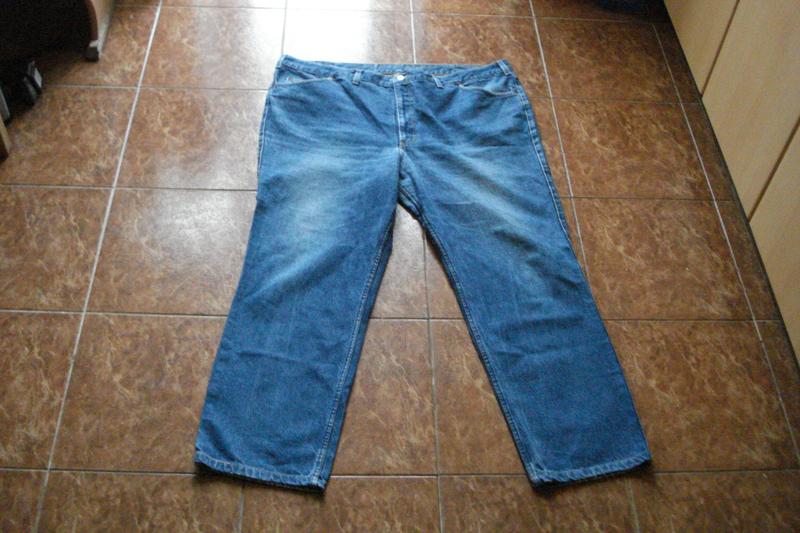 Оригинальные MUSTANG Tramper Jeans из плотного денима синего цвета (100% хлопок) в хорошем состоянии(есть незаметная штопка между ног, стоит надежная внутреняя заплаточка. См. последнее фото). Покрой классический: высокая посадка, пять карманов, двойные швы цепным стежком. Объем талии 124 см, высота посадки спереди 39 см, высота посадки сзади 48 см, полуобхват в бедрах 68 см, длина 105 см по внешнему шву, 81 см - по внутреннему шву, ширина внизу 23 см.