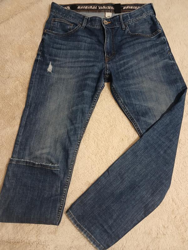 джинсы мужские размер M. H&M в идеальном состоянии. на бирке написан размер 164 пояс полуобхват 42 см. бедра полуобхват 53 см. посадка спереду 27 см. посадка сзаду 36 см. Длина 95 см. Шаговая длина 69 см. ширина верху штанини 31 см. низ штанини 16см. тканина стрейчова гарно тягнеться. замеры делались не в натяжку. пояс регулируется. L.