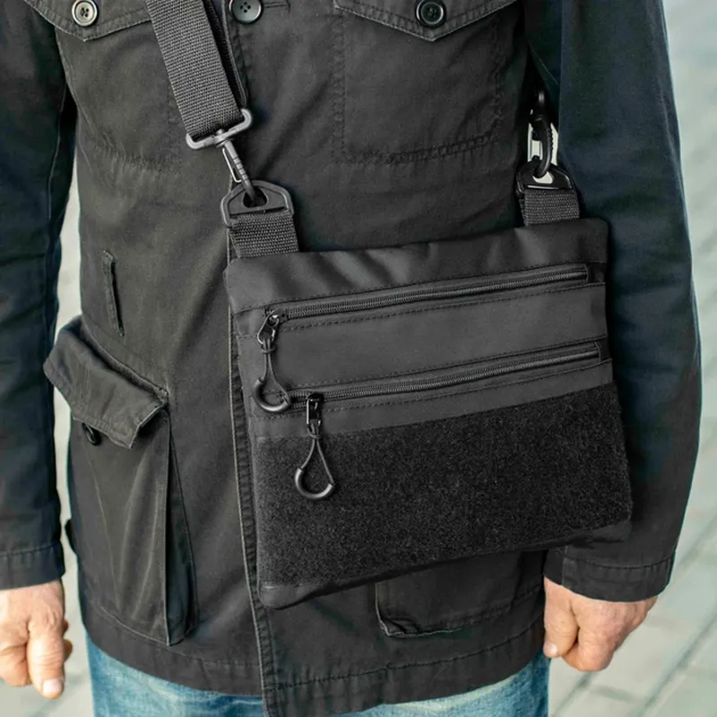 Размер сумки 30 х 24 см Съемная кобура и чехол для магазина. Панель для патчей. Четыре кармана. Две основные, две внутренние. Фиксатор для аксессуаров. Два бегунка с тактическими пуллерами. Ткань кордура водонепроницаема, что делает сумку надежной в любых условиях.